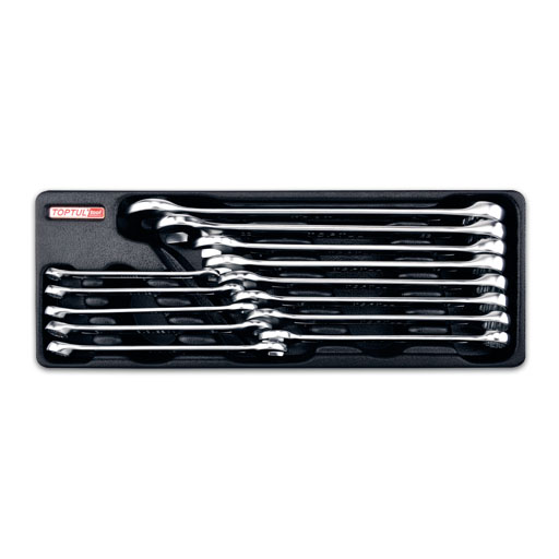Set Contains: 8, 10, 11, 12, 13, 14, 15, 16, 17, 18, 19, 22, 24mmSupplied in a modular tray AAEB series of Standard combination wrenches are designed for automotive repair & maintenace applications.Chrome Vanadium Alloy Steel, high torque performance giving over 1.6 times the ANSI & DIN standard. Satin Chrome finished for maximum durability and corrosion resistance.